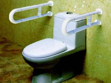 用于残疾人如厕时可辅助保证平衡和辅助站立,安装于座便器两侧或淋浴凳旁。